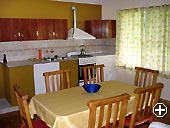 Se compone de tres baños, un lavadero, 4 habitaciones, la 1º y 2º con un sommiers de dos plazas, la tercera y cuarta, que en realidad es una habitación doble tiene una capacidad de 9 personas en camas de una plaza. Se incluye servicio de ropa de blanco.